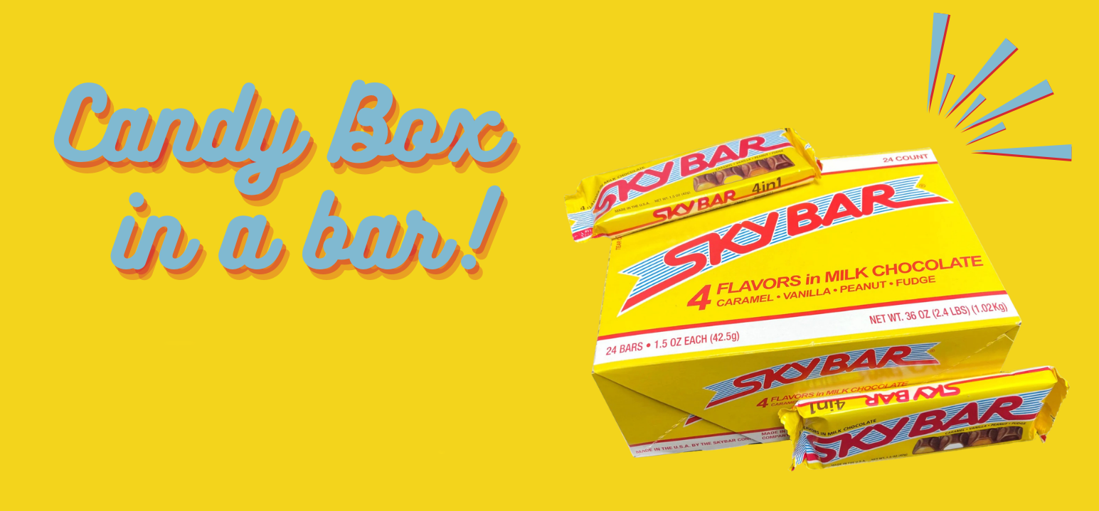 Invented in 1938 by Joseph Cangemi while working at the New England Confectionary Company (Necco), this tasty treat has been a favorite for generations! Saved from extinction in 2018, it is now manufactured by the Skybar Confectionary Company located in Sudbury, MA.